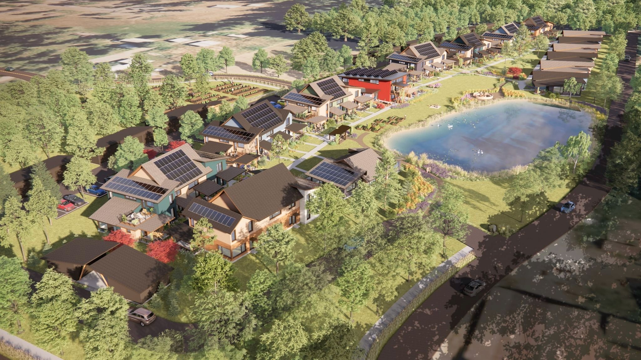 Through a collective effort, our community’s founders purchased a former family farm to design a village model that placed homes in centralized clusters, rather than spreading development across the land.